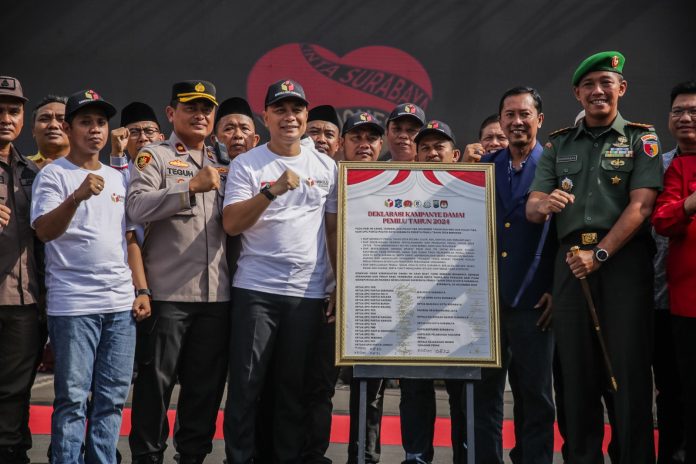 Deklarasi Pemilu Damai 2024 di Halaman Balai Kota Surabaya, Kamis (23/11/2023)