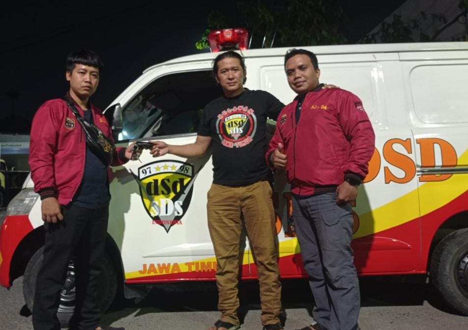 NEWS TIMES – Leting DSD SDS Jatim 97-98 siapkan satu unit ambulans gratis kepada relawan Jombang, pada Jumat (7/6/2024) malam. Ambulance gratis itu diserahkan langsung oleh anggota Intel Polrestabes Surabaya, Aiptu Adik Pujianto, sekaligus sebagai penanggung jawab Bidang Sosial Leting DSD SDS Jatim.