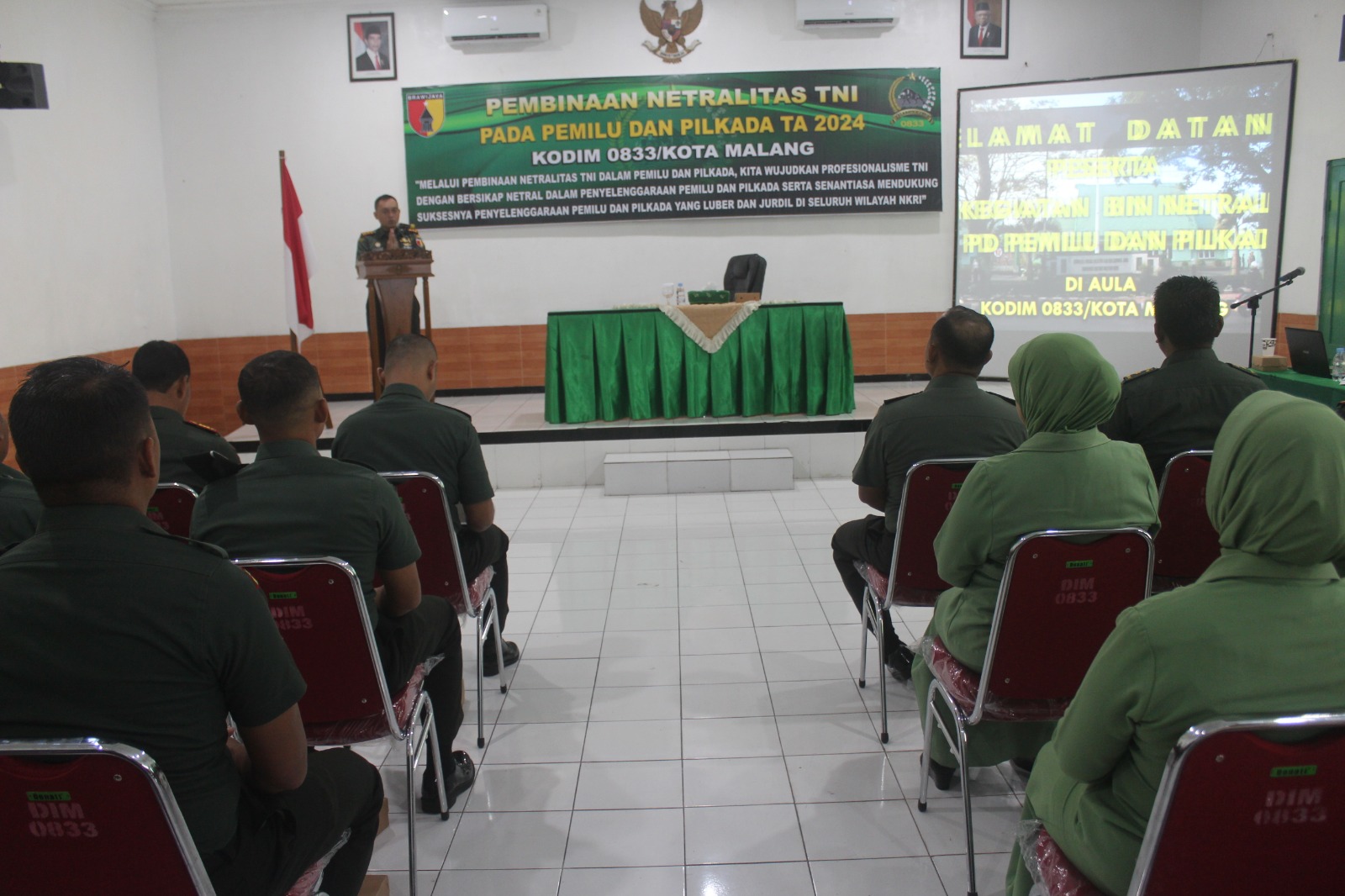 Dalam mendukung kesuksesan pemilu dan juga pilkada, yang jurdil di seluruh wilayah NKRI, di laksanakan pembinaan Netralitas TNI Pada Pemilu dan Pilkada Tahun 2024 Kodim 0833/Kota Malang, bertujuan dalam menjaga Netralitas TNI dan tidak berpolitik Praktis, dan ikuti oleh sebanyak 100 orang anggota personil.