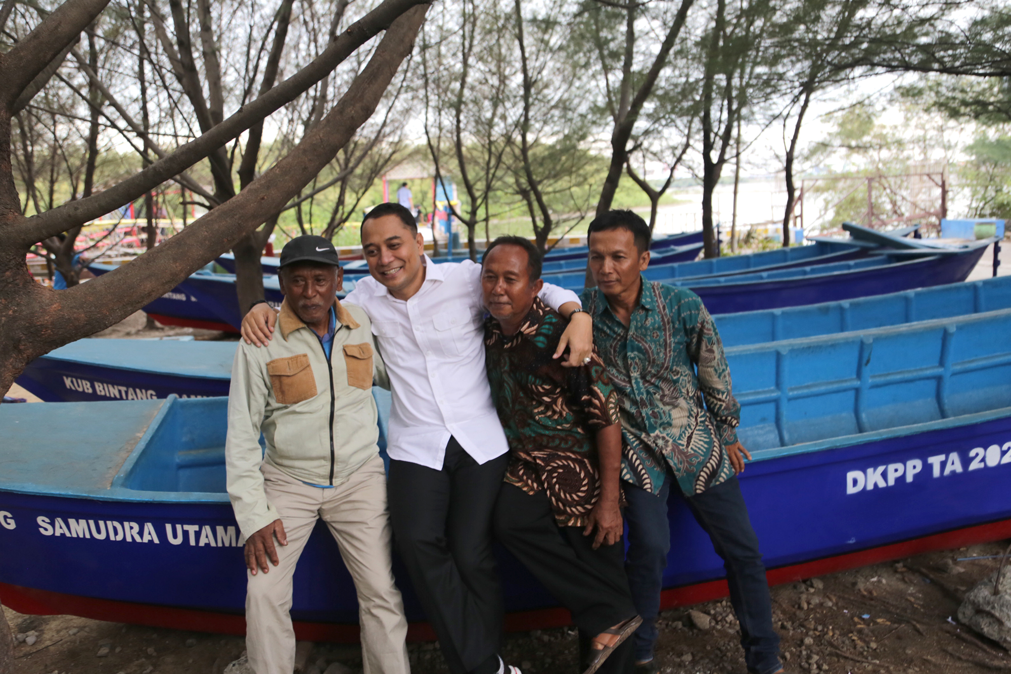 Di hari ini, Wali Kota Eri menyerahkan secara simbolis 9 unit perahu nelayan, 150 unit papan seluncur lumpur, ada juga jaring gillnet sebanyak 17 buah. Tak hanya itu, ada pula bantuan mesin perahu sebanyak 246 unit mesin perahu dari Kemensos RI untuk nelayan di Kota Surabaya.