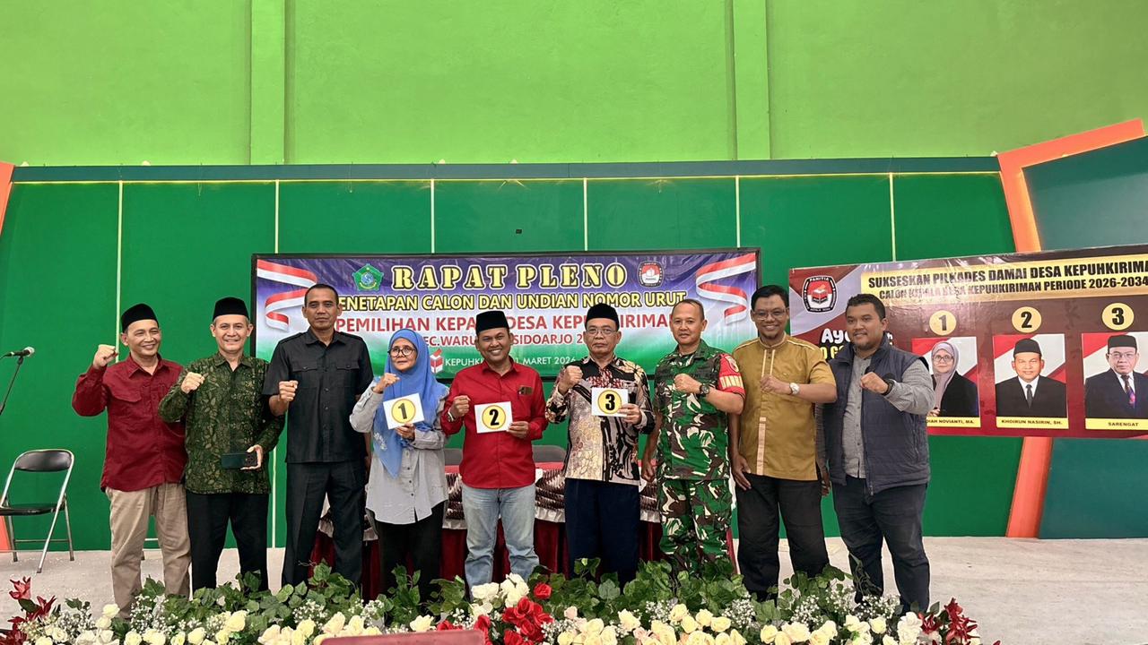 NEWS TIMES – Panitia Pemilihan Kepala Desa, mengadakan Rapat Pleno Penetapan Calon dan Undian Nomor Urut Pemilihan Kepala Desa(Pilkades) 2026 Kepuhkiriman, Kecamatan Waru, Kabupaten Sidoarjo, Minggu (1/3/2026).