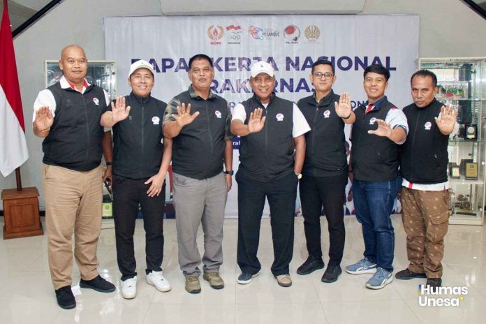 NEWS TIMES – Pengurus Besar Federasi Olahraga Petanque Indonesia (PB FOPI) menggelar Rapat Kerja Nasional (Rakernas) 2026 di Auditorium Fakultas Ilmu Keolahragaan dan Kesehatan (FIKK), Universitas Negeri Surabaya (Unesa) Kampus II Lidah Wetan, pada Sabtu, (25/4/2026).