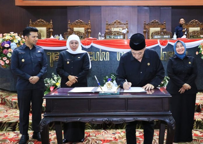 Persetujuan Raperda ini ditandai dengan penandatanganan Berita Acara Persetujuan Bersama oleh Gubernur Khofifah, Ketua DPRD Jatim Kusnadi, Wakil Ketua DPRD Jatim Anik Maslachah, Wakil Ketua DPRD Jatim Achmad Iskandar di Gedung DPRD Jawa Timur pada Kamis (30/11).
