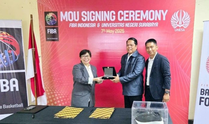 NEWS TIMES – Universitas Negeri Surabaya (Unesa) menandatangani nota kesepahaman kerja sama dengan Fédération Internationale de Basketball (FIBA) atau Federasi Bola Basket Internasional Indonesia di Jogjakarta Plaza Hotel, Rabu, (7/5/2025).